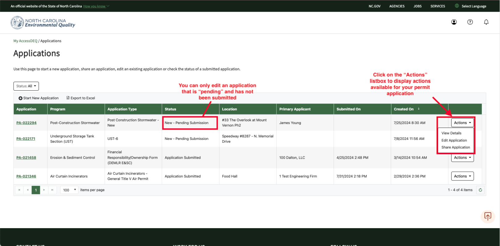 • You can only edit applications that have a “pending” status.  Once a permit application has been submitted, it cannot be edited.