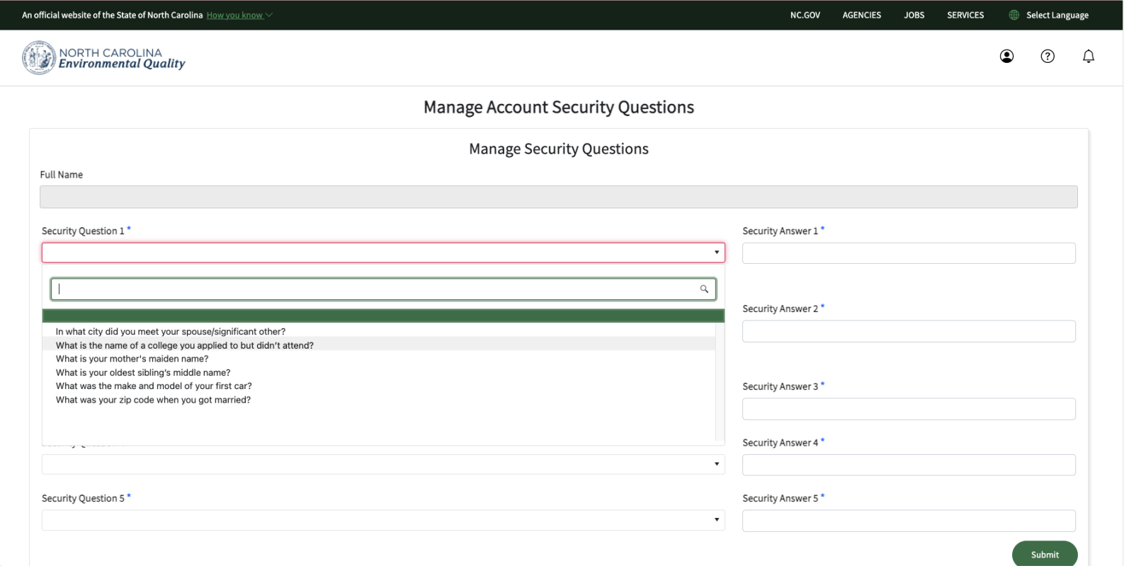 • After logging into the external portal, click on the person icon (dropdown menu) on the top right of the screen and select “My AccessDEQ”